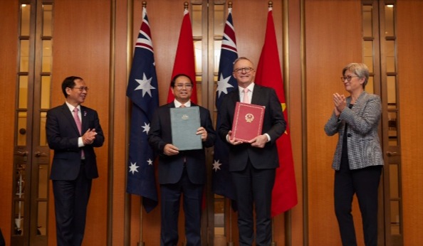 6月26日上午,國務院總理李強在北京人民大會堂同來華進行正式訪問的越南總理範明政會談。這是會談前,李強在人民大會堂北大廳為範明政舉行歡迎儀式。新華社記者 饒愛民 攝 李強表示,中越有着深厚的傳統友誼,兩國利益交融,命運與共。今年是中越建立全面戰略合作夥伴關係15周年。在習近平總書記和阮富仲總書記引領下,兩黨兩國關係發展保持良好勢頭。在複雜動盪的世界局勢中,我們要更加註重維護發展好兩國關係,共同推進社會主義事業,攜手構建更加緊密的命運共同體,在新起點上把雙邊關係推上新台階,為世界和平發展注入更多穩定性和正能量。 李強指出,中國願同越南做好戰略對接,以高質量共建“一帶一路”為主線,用好中越雙邊合作指導委員會機制,統籌推進執法安全、經貿投資、科教文衞等領域合作,把合作的蛋糕越做越大。雙方要加快商簽“一帶一路”和“兩廊一圈”對接合作規劃綱要。深入挖掘兩國鐵路運輸效能潛力,加快邊境標準軌鐵路聯通,推進口岸開放升格和設施聯通。擴大農產品貿易、投資、能源等領域合作。增開直航航班,增進文旅、教育、青年等領域交流。希望越南政府繼續為中國企業赴越投資興業創造良好營商環境。中方願同越方踐行真正的多邊主義,加強在聯合國等多邊機構中的協調配合,深化中國-東盟、瀾滄江-湄公河等框架內合作。 李強強調,中方願同越方堅持通過對話協商管控分歧,推進海上務實合作,加快“南海行為準則”磋商,避免採取使形勢複雜化、擴大化的行動。 范明政表示,越中兩黨兩國人民感情深厚,越方始終銘記中方為越南爭取民族獨立、推動國家發展提供的巨大幫助,將對華關係視作越外交政策的頭等優先。親望親好,鄰望鄰好。越方高度評價中方防控新冠疫情、推進對外開放和經濟社會發展取得的巨大成就,支持中方在習近平新時代中國特色社會主義思想指引下全面建設社會主義現代化國家,願學習借鑒中方寶貴經驗,進一步深化越中全面戰略合作夥伴關係。中國的發展為地區和世界穩定繁榮作出重要貢獻。越方堅定奉行一個中國政策,積極支持參與共建“一帶一路”倡議和全球發展倡議,願同中方深化經貿、投資、基礎設施建設、衞生、科技、人文等領域交流合作,加強多邊協調配合,實現共同發展、共同繁榮。越方願同中方管控好分歧,維護海上和平穩定。 會談後,兩國總理共同見證簽署海上合作、市場監管、口岸建設等多項雙邊合作文件。 會談前,李強在人民大會堂北大廳為范明政舉行歡迎儀式。 【編輯:丘志彬】