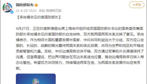 香港新聞網6月27日電 據微信公眾號“國防部發布”消息,6月27日,國務委員兼國防部長李尚福在北京會見了越南國防部長潘文江。
