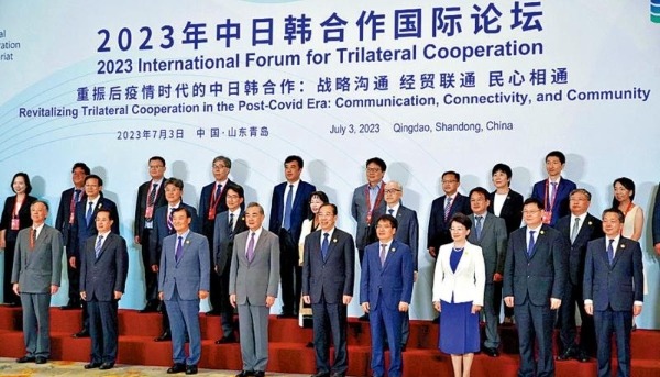 香港新聞網7月3日電 2023年中日韓合作國際論壇於7月3日上午在青島舉行。中共中央政治局委員、中央外事工作委員會辦公室主任王毅在論壇發表題為“把握正確方向,共同振興亞洲”的講話。“從青島發出中日韓合作重整行裝再出發的明確信號。”