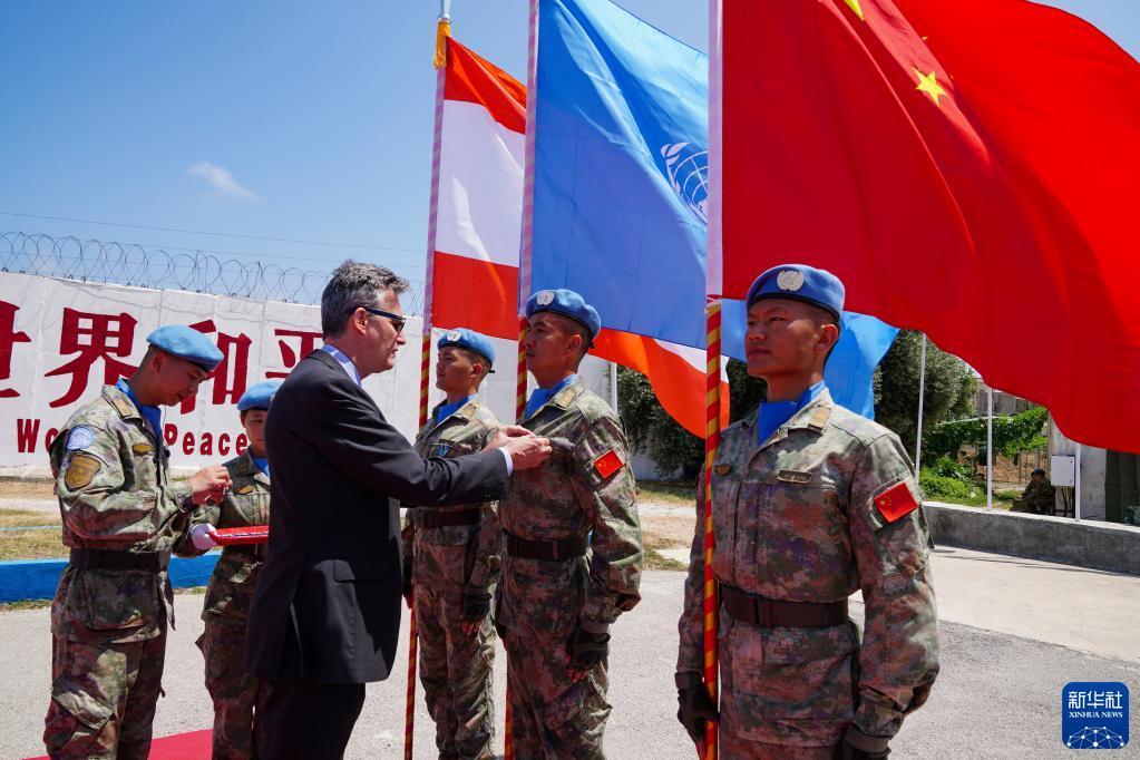 7月4日,在黎巴嫩南部地區辛尼亞村中國維和營,聯合國駐黎巴嫩臨時部隊官員為中國維和官兵佩戴“和平榮譽勛章”。新華社發(李竹林攝) 聯合國駐黎巴嫩臨時部隊(聯黎部隊)司令拉薩羅、中國駐黎巴嫩大使錢敏堅等300余名嘉賓出席儀式。拉薩羅檢閱了中國維和部隊,並為維和官兵代表頒發佩戴勛章。 拉薩羅致辭說,中國維和官兵不僅出色完成任務,還積極幫助當地人民,他相信中國維和官兵將繼續為和平事業作出貢獻。 自去年8月部署到任務區以來,中國第21批赴黎維和部隊已累計清排雷場面積8400余平方米,安全排除地雷1400余枚,高標準完成100余項施工任務,接診聯合國人員和當地民眾3000余人次。任務之余,中國維和官兵還在當地開辦中文班、中醫培訓班,開展文化交流活動,受到聯黎部隊、黎巴嫩政府和當地民眾的廣泛贊譽。 (來源:新華社) 【編輯:馬華】