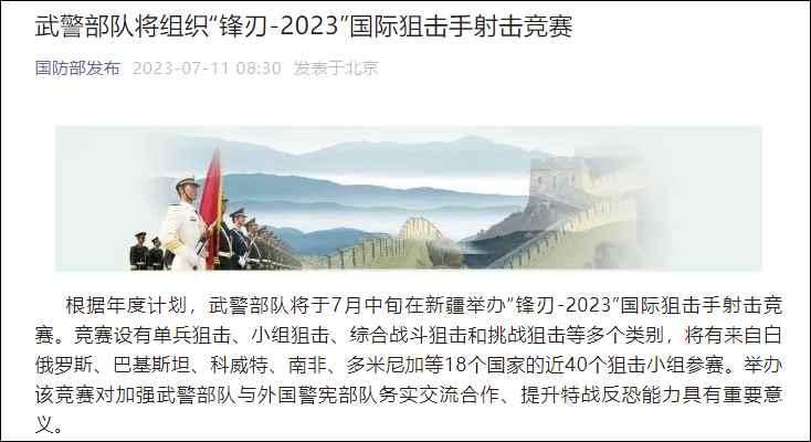 中國武警部隊將辦“鋒刃-2023”國際狙擊手射擊賽