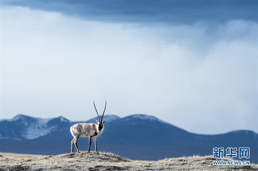 一只回遷藏羚羊在可可西裏地區活動(資料圖)。新華社圖片