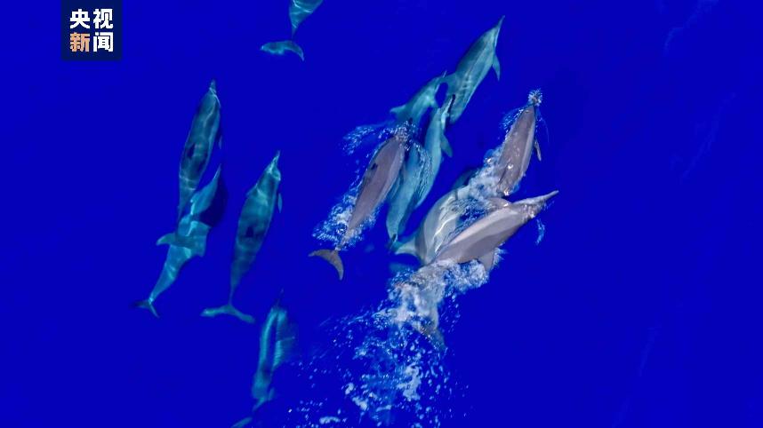 本文圖片均轉自央視新聞客戶端 考察期間,共目擊到深潛鯨類和遠海型海豚動物58群次,其中深潛鯨類27群次。經對考察結果進行初步分析發現,本航次目擊到的鯨類動物至少包含15個物種,其中深潛鯨類10種,包括抹香鯨、短肢領航鯨、瑞氏海豚、糙齒海豚、小虎鯨、小抹香鯨和侏儒抹香鯨,以及3種珍稀喙鯨。此外,本航次還記錄到5種遠海型海豚,包括條紋海豚、弗氏海豚、熱帶斑海豚、長吻飛旋海豚和瓶鼻海豚。