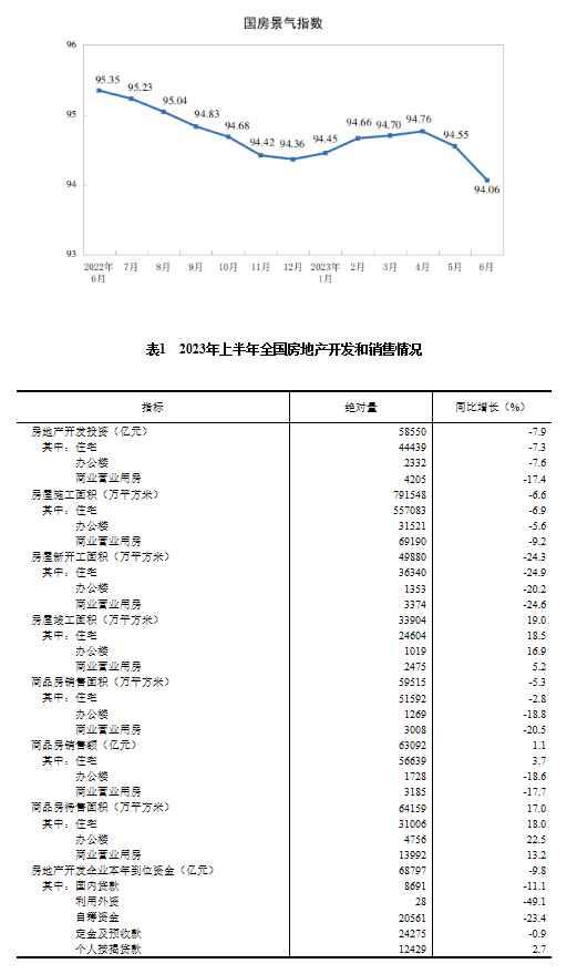 四、房地產開發景氣指數 6月份,房地產開發景氣指數(簡稱“國房景氣指數”)為94.06。