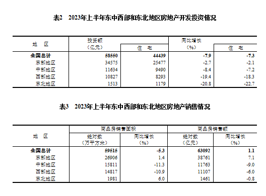 香港新聞網7月17日電 7月17日,國家統計局公佈2023年上半年全國房地產市場基本情況: 一、房地產開發投資完成情況 上半年,全國房地產開發投資58550億元,同比下降7.9%(按可比口徑計算,詳見附註6);其中,住宅投資44439億元,下降7.3%。 上半年,房地產開發企業房屋施工面積791548萬平方米,同比下降6.6%。其中,住宅施工面積557083萬平方米,下降6.9%。房屋新開工面積49880萬平方米,下降24.3%。其中,住宅新開工面積36340萬平方米,下降24.9%。房屋竣工面積33904萬平方米,增長19.0%。其中,住宅竣工面積24604萬平方米,增長18.5%。