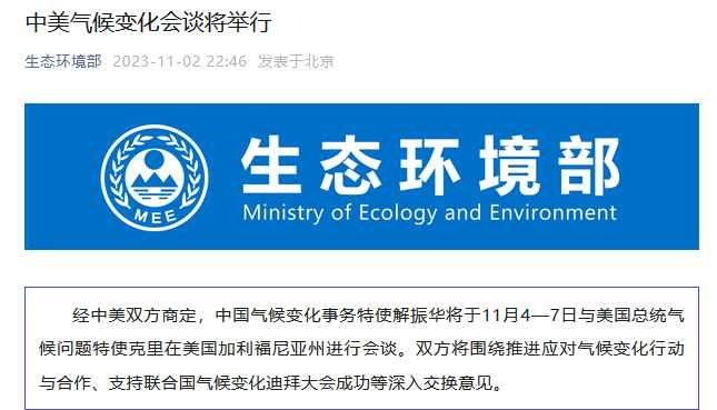 雙方一致認為,氣候變化是人類面臨的共同挑戰,兩國攜手合作應對該挑戰具有重要意義。雙方圍繞落實《中美應對氣候危機聯合聲明》《中美關於在21世紀20年代加強氣候行動的格拉斯哥聯合宣言》,就推進全球氣候治理、加強對話合作等議題進行了坦誠、深入、建設性的對話。 會談期間,雙方介紹了各自應對氣候變化的政策措施和行動進展,並圍繞能源轉型、全球綠色產業鏈供應鏈、低碳零碳負碳技術、推動合作機制化務實化等深入交流,願繼續共同努力推動氣候變化多邊進程,堅持《聯合國氣候變化框架公約》和《巴黎協定》的目標和原則,支持《聯合國氣候變化框架公約》第二十八次締約方大會(COP28)主席國阿聯酋的工作,與各方一道推動COP28取得成功。 雙方商定將繼續保持密切溝通。生態環境部、外交部、國家發展改革委、國家能源局等部門相關同志參加會談。 【編輯:丘志彬】