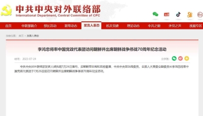 毛寧 資料圖 圖源:外交部網站 記者提問,中共中央政治局委員、全國人大常委會副委員長李鴻忠將率中國黨政代表團於7月26日起訪問朝鮮,並出席朝鮮戰爭停戰70周年紀念活動,請問他是否與朝鮮領導人舉行會見? “關於全國人大常委會副委員長李鴻忠對朝鮮的訪問,中聯部已經發佈了消息。”毛寧說。 她表示,中國和朝鮮是山水相連的友好鄰邦,兩黨兩國一直保持著友好交往的傳統。今年是朝鮮戰爭停戰70周年,中方應邀派高級別代表團訪朝,並出席相關的紀念活動,體現了雙方對鞏固和發展中朝關係的高度重視。我們相信這次訪問有利於推動中朝關係的健康穩定發展,有利於促進地區的和平穩定,也有利於為政治解決半島問題創造條件。 “關於訪問的具體情況,我們會及時發佈消息,請你保持關注。”毛寧說。 【編輯:丘志彬】