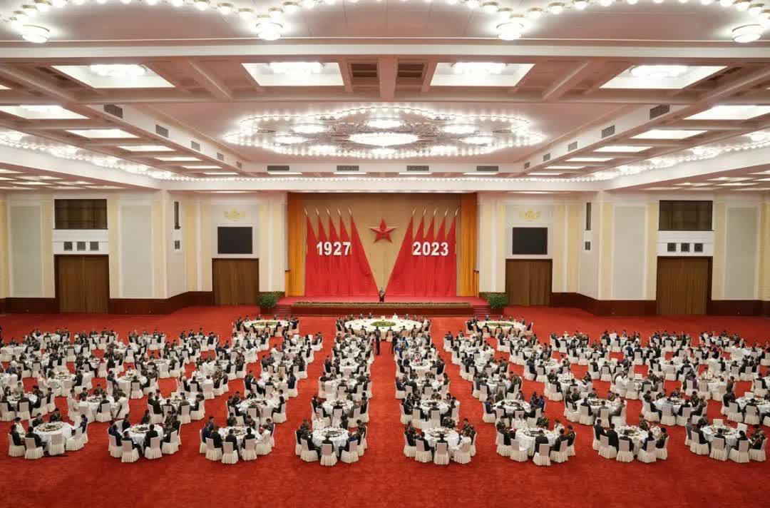 中華人民共和國國防部在人民大會堂舉行招待會,熱烈慶祝中國人民解放軍建軍96周年。(解放軍報) 人民大會堂氣氛熱烈,中外嘉賓歡聚一堂。主席台帷幕正中莊嚴的“八一”軍徽熠熠生輝,10面紅旗分列兩側。“1927—2023”的大字年號,昭示着中國人民解放軍走過96年的光輝歷程。 18時許,招待會在雄壯的《中國人民解放軍軍歌》聲中開始。李尚福代表黨中央、國務院、中央軍委,向全體人民解放軍指戰員、武警部隊官兵、軍隊文職人員、預備役人員、民兵致以節日祝賀,向在各個時期為人民軍隊建設作出貢獻的離退休老同志、退役軍人、革命傷殘軍人和烈軍屬表示親切慰問,向全軍英雄模範、全國雙擁模範、全國模範軍隊轉業幹部致以崇高敬意,向在國防科技工業戰線頑強拚搏的科學家、工程技術人員和廣大幹部職工表示誠摯問候,向長期關心支持國防和軍隊建設的各級黨委和政府、人民團體,向全國各族人民表示衷心感謝,向出席招待會的各國駐華武官和夫人及各位來賓表示熱烈歡迎。 李尚福說,新時代新征程,我們要全面貫徹黨的二十大精神,深入貫徹習近平強軍思想,深入貫徹新時代軍事戰略方針,全面加強軍隊黨的建設,全面加強練兵備戰,全面加強軍事治理,鞏固提高一體化國家戰略體系和能力,堅定不移推進祖國統一大業,如期實現建軍一百年奮鬥目標,加快把人民軍隊建成世界一流軍隊。中國軍隊將忠實踐行習近平主席提出的全球安全倡議,持續深化國際軍事交流合作,為變亂交織的當今世界注入更多確定性和正能量。 歡快的樂曲聲中,中外賓朋舉杯共賀中國人民解放軍建軍96周年,祝願中國人民解放軍同世界各國軍隊友誼長青。 軍委機關各部門、軍隊駐京有關單位領導等出席招待會。 出席招待會的還有中共中央、國務院有關部門,北京市、對外友協負責人;軍隊離退休老幹部代表,部隊英模、首都民兵、烈軍屬和全國雙擁模範、原國民黨起義人員代表以及各國駐華武官夫婦等中外嘉賓。 【編輯:丘志彬】