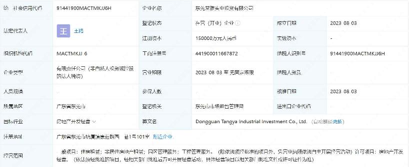 香港新聞網8月7日電 8月7日,企查查信息顯示,華為新成立東莞棠雅實業投資有限公司,成立日期2023年8月3日,註冊資本15億元人民幣,由華為投資控股有限公司全資持股。 工商信息顯示該公司國標行業為房地產開發經營,經營範圍包括,一般項目:住房租賃;非居住房地產租賃;園區管理服務;工程管理服務。(除依法須經批準的項目外,憑營業執照依法自主開展經營活動)許可項目:房地產開發經營。(依法須經批準的項目,經相關部門批準後方可開展經營活動,具體經營項目以相關部門批準文件或許可證件為準)。 對於外界關注,有知情人士對媒體透露,該公司主要承擔建設、管理園區配套人才房功能,無對外拓展房地產業務屬性。