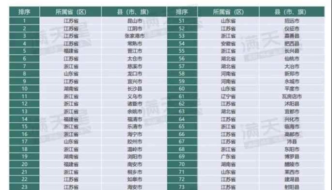 2023年中國54個百強縣進入“GDP千億俱樂部”香港新聞網8月8日電 2023年百強縣榜單出爐。近日,中國工業和信息化部中國電子信息產業發展研究院旗下賽迪顧問發佈《2023中國縣域經濟百強研究》報告(以下簡稱報告),對全國(除港澳台)1864個縣級行政單位進行分析。報告顯示,2023百強縣中進入“GDP千億俱樂部”的縣域達到54個,其中江蘇、浙江兩省“千億縣”數量保持領先。