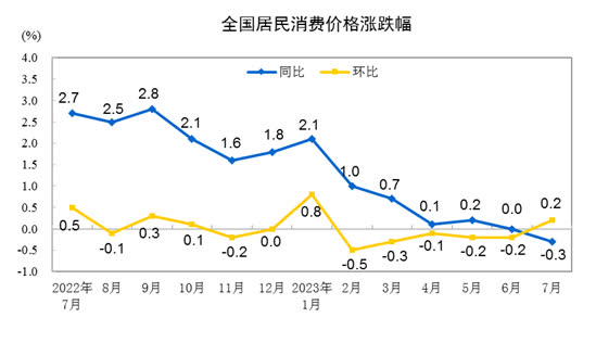 國家統計局:7月CPI同比下降0.3% 環比上漲0.2%分享到: