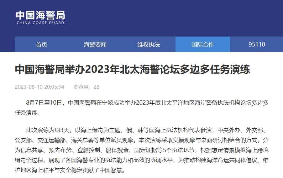 香港新聞網8月11日電 據中國海警局消息,7日至10日,中國海警局在寧波成功舉辦2023年度北太平洋地區海岸警備執法機構論壇多邊多任務演練。