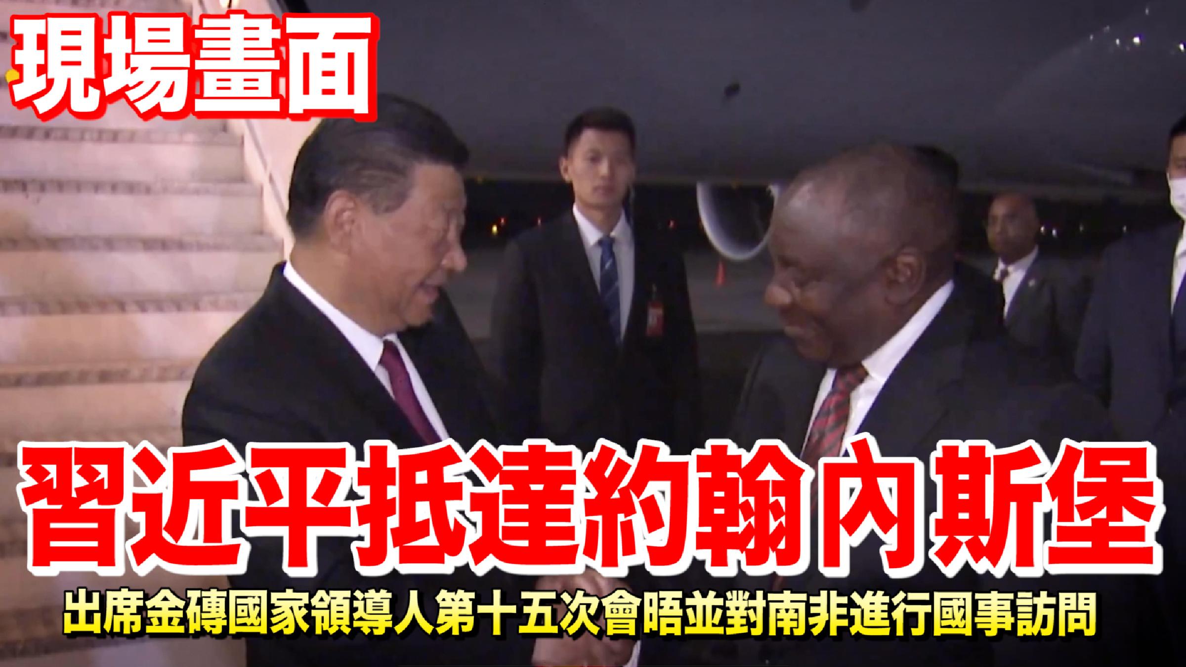 習近平抵達約翰內斯堡出席金磚國家領導人第十五次會晤並對南非進行國事訪問分享到: