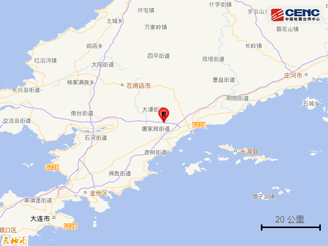 香港中通社8月23日電 中國地震台網正式測定:8月23日18時19分在遼寧大連市普蘭店區(北緯39.42度,東經122.20度)發生4.6級地震,震源深度8千米。