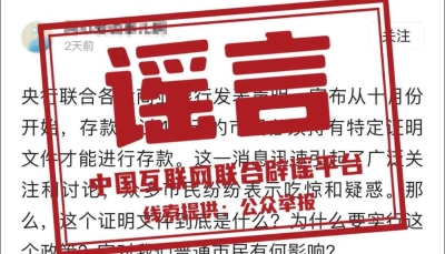 圖源:互聯網聯合辟謠平台 “要凍結存款”謠言從何而來? 上海辟謠平台檢索發現,自今年3月起,網上就出現各種冠以“銀行驚人決策”“銀行重大改革”等標題的消息,來源均為網民個人或名為“**財經說”“**科技”的自媒體。這些賬號發佈的內容大致相同,意思是“銀行有新決策,將永久凍結部分存款賬戶”;“生效時間”則不一樣,有的比較模糊,也有的說是“8月”“9月”等。 目前在一些媒體平台上仍有類似消息在傳播,有財經賬號“添油加醋”地寫到,“存款凍結給儲戶帶來了巨大的不便和困惑,忽視了儲戶的權利。”更有網友在謠言下留言稱,“錢存銀行不靠譜了,有錢趕緊存去國外。” 銀行是否有權凍結存款? 那麽,銀行究竟是否有權凍結儲戶存款呢? 招聯金融首席研究員董希渺接受採訪時表示,一般而言,只有人民法院才有權凍結被執行人的銀行存款及其他資金,銀行會根據法院協助執行通知書等法律文書進行凍結,期限不得超過六個月,到期如果不繼續申請查封(凍結),則解除凍結。 同時,在目前的反電信網絡詐騙工作中,公安機關也會通過銀行對儲戶存款賬戶進行臨時性凍結(臨時性支付)。 “除此之外,即便是中國人民銀行,也無權凍結存款賬戶和存款。”董希渺強調。 談及這類謠言發酵的原因,董希渺認為,一方面部分自媒體賬號利用人們的恐慌心理博取流量,另一方面也反映出反電信網詐工作造成的賬戶突然凍結給儲戶帶來了一些心理上的不確定性。同時,未來要繼續提高居民的金融素養,加強投資者教育。 【編輯:丘志彬】