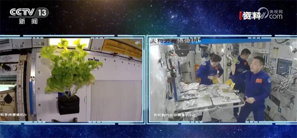 這就是被稱為“太空菜園”的太空栽培裝置,該裝置是中國航天員科研訓練中心科研人員設計的一種模塊化的簡易太空植物栽培裝置,採用開放式結構,航天員可以與植物隨時親密接觸。植物生長所需要的二氧化碳、溫濕度和氧氣等氣體環境和艙內航天員基本一致,植物種植操作簡單,便於照料。航天員還可按個人喜好將該裝置任意擺放在艙內有光照的地方,為自己的工作生活環境增添一抹綠意。這次種植的生菜得到科學配置的光照和水分,在太空環境下也長勢喜人。
