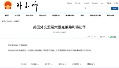 香港新聞網8月29日電 8月29日,中國外交部發言人汪文斌主持例行記者會。 有記者提問,中方剛發布了英國外交發展大臣克萊弗利訪華的消息,中方如何看待當前中英關係?中方對此有何期待?