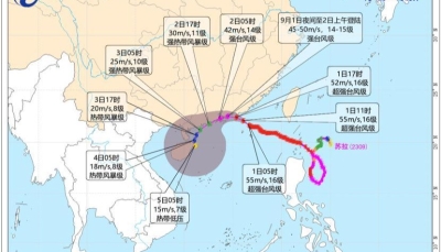 8月31日08時至9月1日08時,巴士海峽、台灣海峽、南海東北部、福建沿海、廣東中東部沿海、台灣島南部沿海、東沙群島將有6—8級、陣風9—10級的大風,其中巴士海峽偏西海域、南海東北部海域、東沙群島的風力有9—11級,部分海域風力可達12—13級,“蘇拉”中心經過的附近海面風力有14—17級、陣風17級以上。