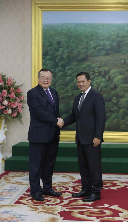9月3日,柬埔寨政府首相洪瑪奈(右)在金邊會見中共中央對外聯絡部部長劉建超。 洪瑪奈表示,人民黨贏得第七屆全國大選,反映了柬埔寨人民對人民黨執政的高度認可和對新政府的期待。新一屆政府將繼續堅定奉行人民黨對華友好政策,讓柬中關係好上加好,我就任首相後第一次正式出訪就將選擇中國。柬方願落實好兩國領導人達成的重要共識,推動構建“鑽石六邊”合作架構,有效推進“工業發展走廊”和“魚米走廊”建設,推動構建新時代柬中命運共同體。台灣、新疆、香港事務都是中國內政, 柬方將繼續堅定恪守一個中國原則。柬方堅定支持並積極參與中方提出的“一帶一路”倡議和三大全球倡議。 劉建超表示,中方對柬政府實現平穩過渡感到由衷高興,堅定支持人民黨長期穩定執政。中方期待洪瑪奈首相對中國進行正式訪問。中方高度重視中柬命運共同體建設,願通過多種方式支持柬新一屆政府施政,共同為中柬關係發展作出不懈努力。中國共產黨願通過黨際渠道全力服務保障雙方高層戰略溝通,全力支持柬新一屆政府施政,全力推動中柬務實合作。 上月22日,柬埔寨第七屆國會第一次會議在金邊表決通過洪瑪奈為新一屆政府首相。(完) 【編輯:丘志彬】