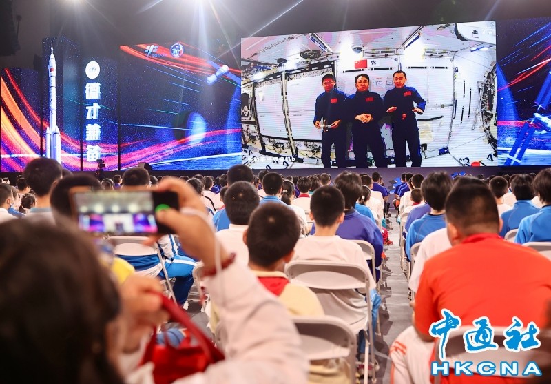 香港中通社9月21日電 北京時間9月21日15時48分,“天宮課堂”第四課在中國空間站開講。新晉“太空教師”景海鵬、朱楊柱、桂海潮,首次在夢天實驗艙內,為中國5個地面課堂約2800名學生代表等進行太空科普授課。