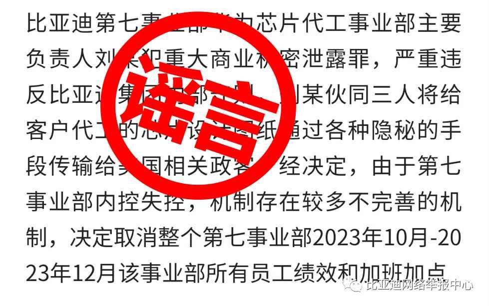 比亞迪:“比亞迪工作人員泄露商業秘密”系謠言分享到: