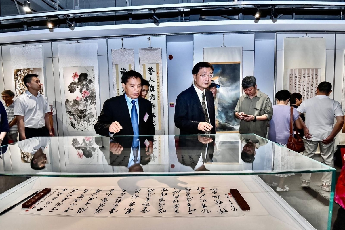 香港廣州書畫會主席黎鑄英(右二)為廣州市市委常委、統戰部部長王世彤(右三)、香港廣州社團總會會長霍震寰(左三)等導賞作品(主辦方供圖) 廣州市委常委、統戰部部長王世彤在致辭中表示,此次書畫展以“我和祖國有個約會”為主題,邀請穗港澳台和華僑華人優秀藝術家們參展,用書墨韵香迎國慶、妙筆丹青頌祖國,集中表達了對偉大祖國的深情告白、對民族復興的美好期待。希望書畫藝術家們更好地肩負起新的文化使命,通過書畫藝術大力傳承弘揚中華優秀文化特別是嶺南文化、僑鄉文化、海絲文化,以高度的文化自信生動講好廣州故事、灣區故事、中國故事;希望大家以中華優秀文化為媒,共同深化粵港澳大灣區人文灣區建設,不斷加大對外傳播和文化交流力度,為凝聚中華民族偉大復興的精神力量作出新的更大貢獻。 香港廣州社團總會會長霍震寰表示,廣州華僑博物館由五仙門發電廠改建而成,是全國首家利用百年老建築建設的華僑專題博物館。在這裡舉辦“我和祖國有個約會”書畫展覽,充分發揮“以僑為橋,以館為媒”特色,必能大力弘揚華僑華人文化。此次展覽收錄的作品,既凝聚了書畫家對廣州的深厚情感,也體現出廣州和中國美術發展的密切關係。希望大家以文化為平台、以書畫為載體,進一步加強文化藝術交流,為投身中華民族偉大復興事業作出貢獻。 香港廣州書畫會主席黎鑄英表示,參展者有來自香港、澳門、台灣和廣州的知名藝術家,也有來自美國、加拿大、澳大利亞、新加坡、菲律賓等地的華僑華人藝術家。大家如約而至、歡聚一堂,共同感受用筆墨凝結的鄉愁情懷。以此次書畫展為開端,將進一步深化穗港澳台僑界文化藝術交流,讓世界看到亮麗的中國風。 展期將持續至10月20日。(完) 【編輯:吳一帆】