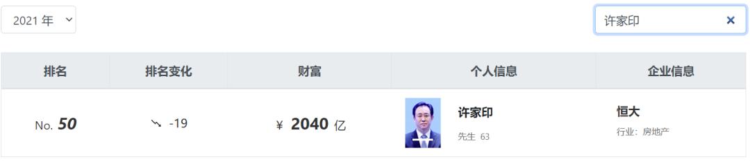 公開資料顯示,9月19日,恒大地產集團有限公司新增3條被執行人信息,執行標的合計9.8億余元,涉及票據追索權糾紛等,執行法院為哈爾濱市中級人民法院、唐山市路北區人民法院、宿遷市宿城區人民法院。 目前,恒大地產集團有限公司存在超590條被執行人信息,被執行總金額超560億元,此外還存在多條限制消費令、失信被執行人(老賴)和終本案件信息。 據《2023胡潤全球富豪榜》顯示,許家印如今身家僅剩200億,全球排行第1100名,較去年下降712名,比2年前縮水超過90%。就在2年前的2021年,許家印身家還高達2040億元,全球排行第50名。
