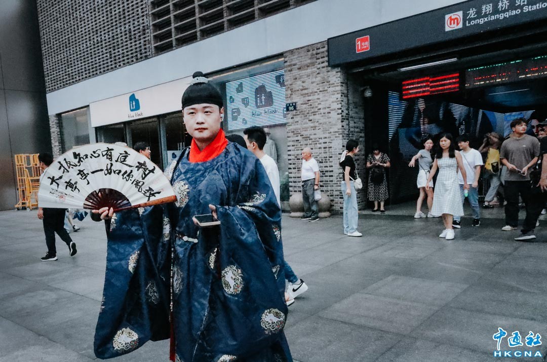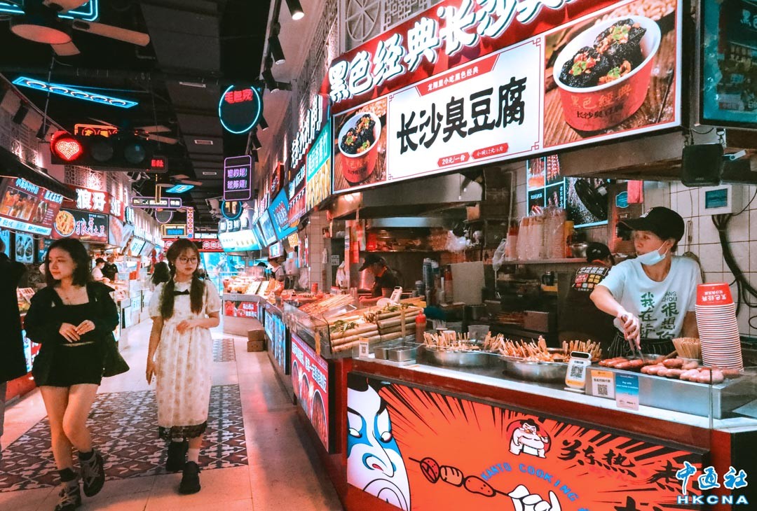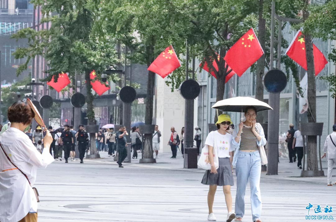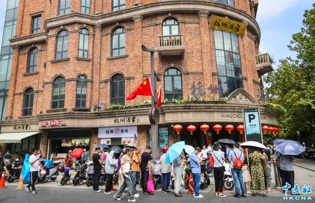 杭州商圈街頭紅旗飄飄,一派節日氣氛