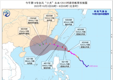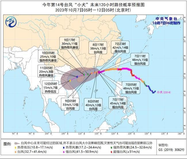 今年第14號台風“小犬”(強台風級)的中心今天(10月7日)早晨7時位於廣東省汕尾市偏南方大約190公里的南海北部海面上。據中央氣象台預計,“小犬”將以每小時5~10公里的速度向西偏南方向移動,強度維持或緩慢減弱,逐漸向廣東西部到海南島東部一帶沿海靠近。 海浪方面,預計10月7日中午到8日中午,南海北部將出現6到9米的狂浪到狂濤區,近海海域海浪預警級別為橙色;廣東中東部近岸海域將出現3到3.8米的大浪,近岸海域海浪預警級別為黃色。請在上述海域作業的船只注意安全,沿海各有關單位提前採取防浪避浪措施。 【編輯:馬華】