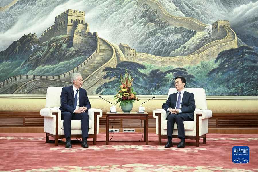 10月16日,國家副主席韓正在北京會見英國工黨前領袖、前首相布萊爾。新華社記者 燕雁 攝 韓正表示,中英同為聯合國安理會常任理事國和世界主要經濟體,都是多邊主義、經濟全球化、自由貿易的維護者、貢獻者、推動者和受益者。在不穩定不確定因素不斷增多的國際形勢背景下,中英加強合作不僅符合兩國各自利益,也有利於整個世界。兩國在清潔能源、生物醫藥、金融、教育、人文等領域合作空間廣闊。雙方要加強國際事務合作,共同應對氣候變化、保護生物多樣性等,維護世界和平安全。 布萊爾表示,當今世界面臨很多挑戰,中國具有重要國際地位,英中保持友好關係非常重要。英方願意同中方坦誠對話,在廣泛領域開展建設性合作,共同應對全球性問題。 【編輯:丘志彬】