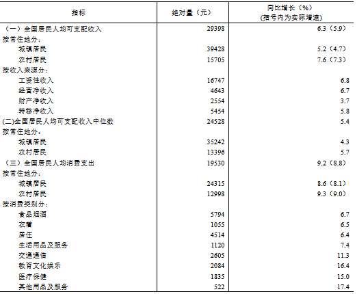 前三季度中國居民人均可支配收入29398元,同比名義增長6.3%分享到: