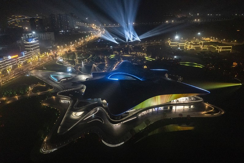 這是10月16日晚拍攝的2023成都世界科幻大會主場館——成都科幻館。新華社圖片 據介紹,2023成都世界科幻大會為期5天,主題為“共生紀元”,國內外頂尖科幻作家、雜志主編、科幻產業代表以及科幻和前沿科技領域專家學者將在此展開思維碰撞,共同推動全球科幻產業發展。 大會期間,備受關注的科幻文學領域國際大獎——雨果獎將揭曉;200多場主題沙龍、展覽、派對等活動將為全球科幻迷打造獨特的科幻體驗。 【編輯:馬華】