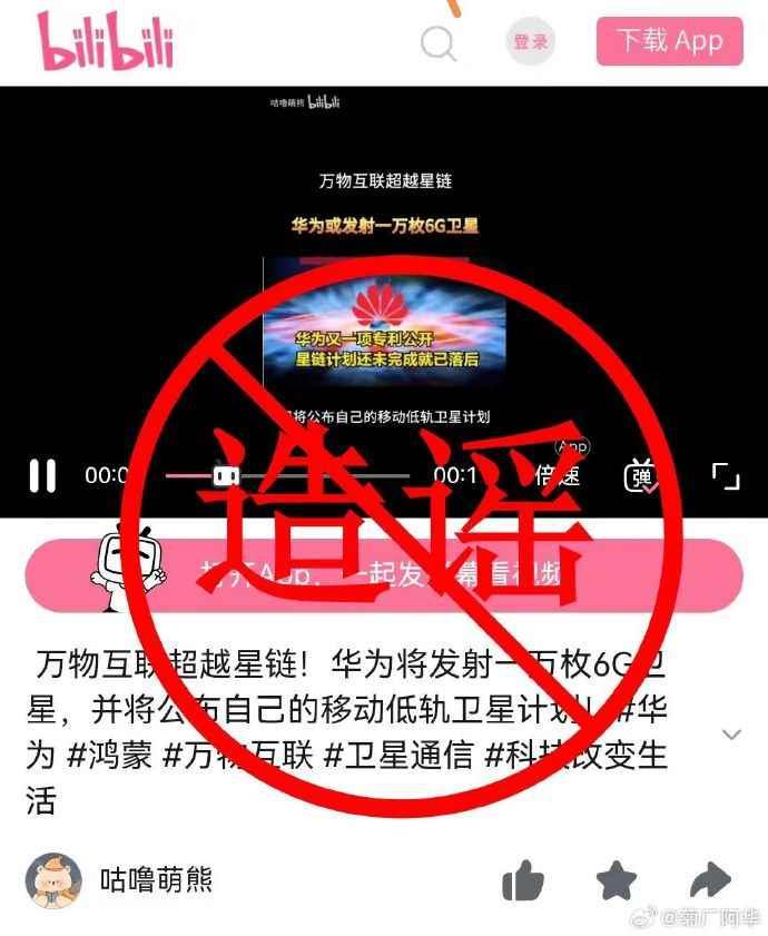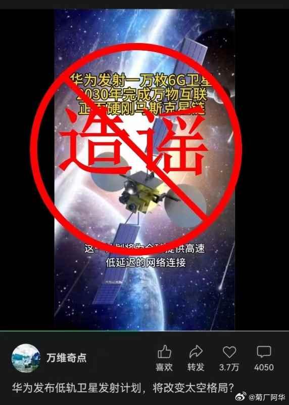 華為聲明:“華為將發射1萬枚6G移動低軌衛星”純屬造謠