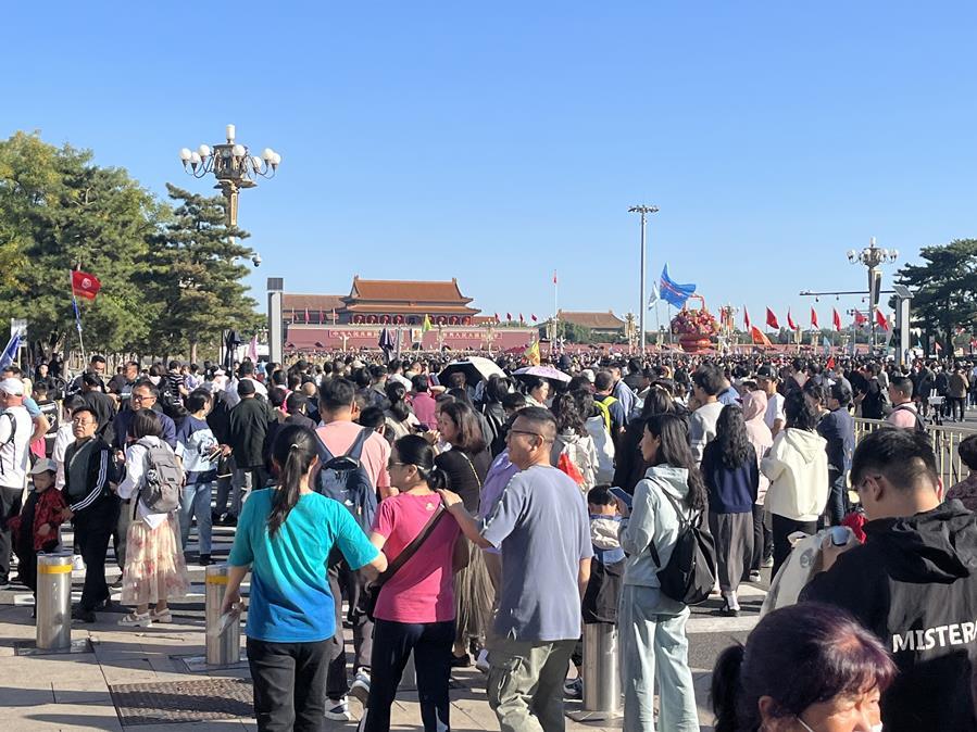 2023年10月1日,中秋國慶雙節假期期間,民眾湧入天安門廣場。 香港中通社圖片 根據國內旅遊抽樣調查統計結果,2023年前三季度,國內旅遊總人次36.74億,比上年同期增加15.80億,同比增長75.5%。其中,城鎮居民國內旅遊人次28.46億,同比增長78.0%;農村居民國內旅遊人次8.28億,同比增長67.6%。分季度看:2023年第一季度,國內旅遊總人次12.16億,同比增長46.5%。2023年第二季度,國內旅遊總人次11.68億,同比增長86.9%。2023年第三季度,國內旅遊總人次12.90億,同比增長101.9%。 2023年前三季度,居民國內出遊總花費3.69萬億元,比上年增加1.97萬億元,增長114.4%。其中,城鎮居民出遊花費3.17萬億元,同比增長122.7%;農村居民出遊花費0.52萬億元,同比增長75.8%。 【編輯:丘志彬】