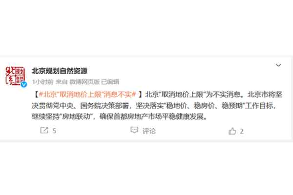 北京“取消地價上限”?官方辟謠