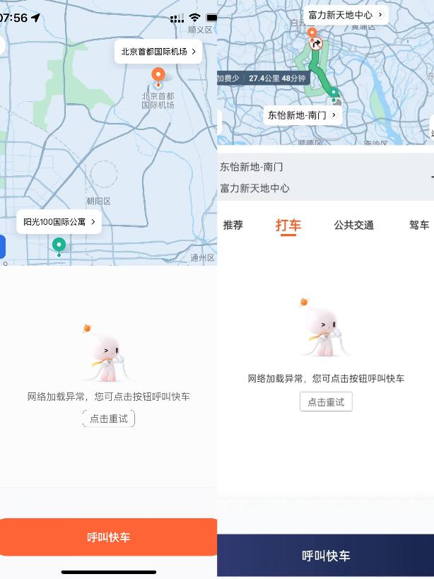 香港新聞網11月28日電 11月27日晚間,“滴滴崩了”話題登上熱搜。不少滴滴用戶在社交平台反映稱,滴滴出行APP出現故障,不顯示定位,無法打車。28日,滴滴官方稱經技術團隊連夜修復,滴滴網約車等服務已恢復,用戶可下載滴滴App使用打車服務。騎車等服務還在陸續修復中,所有可開鎖或未關鎖的青桔車輛均可免費騎行。 不過28日截至發稿前,記者在北京、上海等地使用滴滴呼叫網約車,發現網約車功能並未恢復使用,網絡加載異常,無法打車。