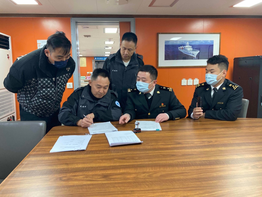 崇明海關對“藍海201”號漁業科學調查船開展登臨檢查 吳燕華 攝 得知相關情況後,崇明海關多次赴調查船基地現場調研,告知船方辦理出境手續所需資料,指導船方通過“互聯網+海關”申請《船舶免予衛生控制措施證書》。同時考慮到該船的特殊性,崇明海關為該船量身制定詳細周密的登臨檢疫方案,確保第一時間開展登臨檢疫,並出具免予衛生控制措施證書,保障該船準時出發。 【編輯:丘志彬】