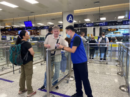 皇崗邊檢站志願者民警在現場為外籍旅客提供入境卡填寫指引。(皇崗邊檢站供圖) “This policy is very convenient. I can travel to China whenever I want. It's truly amazing!謝謝你們。”來自意大利的旅客DELLA MARIANNA CESARE順利辦理入境手續後激動地向移民管理警察點讚道。