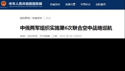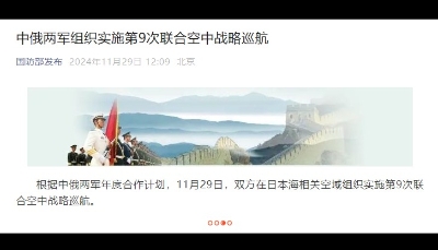 香港中通社12月15日電 中國國防部12月14日晚間發佈消息稱,根據中俄兩軍年度合作計劃,雙方當天在日本海、東海相關空域組織實施第七次聯合空中戰略巡航。這是2023年度中俄組織實施的第二次聯合空中戰略巡航。