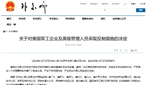 香港新聞網1月8日電 據中國外交部官網7日消息,中國外交部發言人就反制美國向中國台灣地區出售武器、制裁中國實體答記者問。 問:近期,美國出台新一輪對台軍售,並以各種藉口制裁中國企業和個人。中方表示將採取反制措施,發言人能否介紹中方的具體舉措? 答:美國公然違反一個中國原則和中美三個聯合公報,特別是“八·一七”公報規定,向中國台灣地區出售武器,羅織各種藉口對中國企業和個人實施非法單邊制裁,嚴重損害中國主權和安全利益,嚴重破壞台海和平穩定,嚴重侵犯中方企業和個人正當合法權益。中方對此強烈不滿、堅決反對,已向美方提出嚴正交涉。 針對美方上述嚴重錯誤行徑,根據《中華人民共和國反外國制裁法》,中方決定對貝宜陸上和武器系統公司(BAE Systems Land and Armament)、聯合技術系統運營公司(Alliant Techsystems Operation)、宇航環境公司(AeroVironment)、ViaSat公司和Data Link Solutions公司等5家美國軍工企業實施制裁。措施包括凍結在我國境內的動產、不動產和其他各類財產,禁止我國境內組織、個人與其進行交易、合作等活動。 我要強調,中國政府捍衛國家主權、安全和領土完整、維護中國企業和公民合法權益的決心堅定不移。我們敦促美方切實恪守一個中國原則和中美三個聯合公報規定,恪守國際法和國際關係基本準則,停止武裝台灣,停止對華非法單邊制裁,否則必將遭到中方堅決有力回擊。(完)