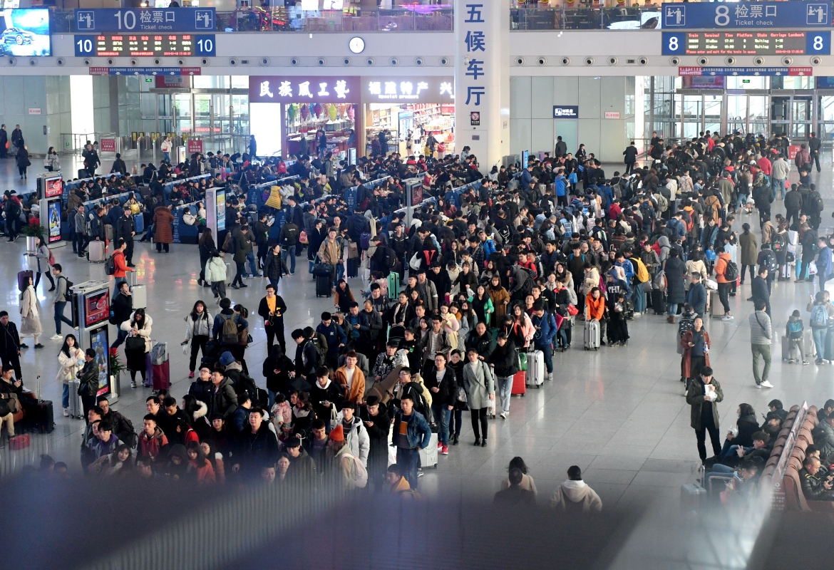 圖為春運期間,旅客在福州火車站候車大廳候車、檢票。 (中新社資料圖)