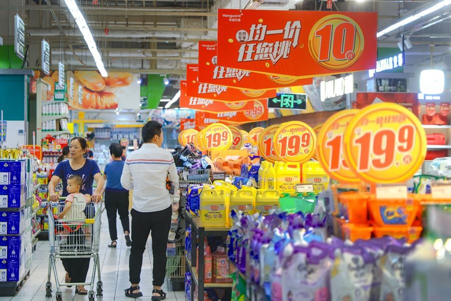 資料圖為深圳市民於超市內購物。香港中通社圖片 分類別看,1-2月份,食品煙酒價格同比下降1.9%,衣着價格上漲1.6%,居住價格上漲0.3%,生活用品及服務價格上漲0.7%,交通通信價格下降1.4%,教育文化娛樂價格上漲2.6%,醫療保健價格上漲1.4%,其他用品及服務價格上漲2.9%。在食品煙酒價格中,豬肉價格下降9.1%,鮮果價格下降6.6%,鮮菜價格下降5.1%,糧食價格上漲0.4%。扣除食品和能源價格後的核心CPI同比上漲0.8%,其中2月份同比上漲1.2%,漲幅比上月擴大0.8個百分點。 從環比看,1月份、2月份,全國居民消費價格分別上漲0.3%和1.0%。(完) 【編輯:丘志彬】