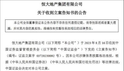香港中通社3月18日電 根據恒大地產集團公告,中國證監會擬決定對恒大集團創辦人許家印、恒大集團前總裁夏海鈞採取終身證券市場禁入措施。