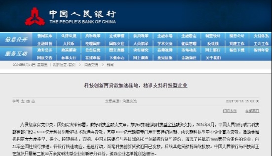 中國央行設立5000億元科技創新和技術改造再貸款分享到: