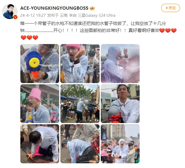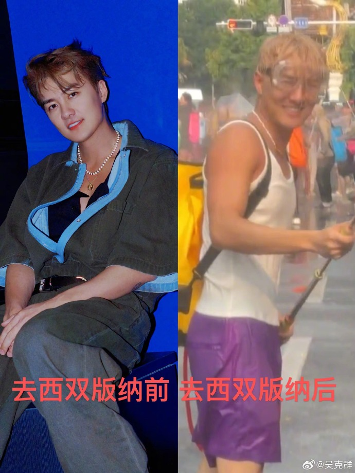 圖源:吳克群社交媒體 接收大家“祝福之水”的吳克群雖然“戰敗”但依然笑得很開心,還在社交平臺分享潑水節視頻,“歡迎大家來西雙版納”。 “看到黃子韜被潑成那個樣子,急忙組了個隊!”演員黃渤來參與潑水節時專門組建“戰隊”,還配備了不同規格的水槍,但沒想到還是毫無還手之力,收穫了周圍群眾滿滿的“祝福之水”。