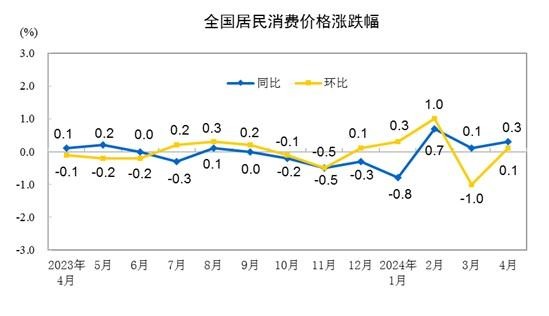 中國國家統計局:4月份居民消費價格同比上漲0.3%分享到: