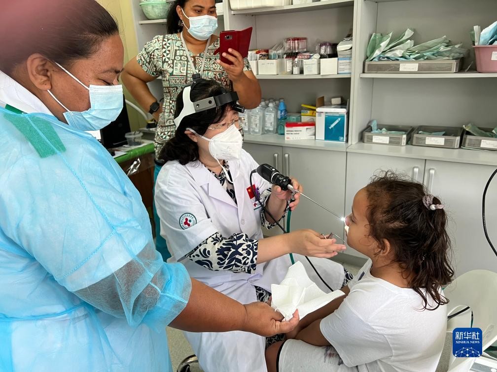 6月22日,中國第八批援薩醫療隊耳鼻喉科醫生崔娜在薩摩亞首都阿皮亞公立醫院為患者診療。新華社發(中國第八批援薩醫療隊供圖) 吉林省自2018年起承擔援薩摩亞醫療任務以來,已派出八批醫療隊共56人次,完成了兩期的醫療援助任務,醫療隊的工作贏得了受援國政府和民眾的高度認可。 2023年應薩摩亞政府要求,中薩兩國簽署了新一期派遣中國醫療隊赴薩摩亞工作的議定書,合作為期四年,醫療隊員由原來的每半年輪換改為每一年輪換,本期任務仍舊由吉林省承擔。 中國(吉林)援薩摩亞醫療任務由吉林省四家醫療機構分擔,目前在外執行任務的是由吉林大學中日聯誼醫院承派的第八批援薩摩亞醫療隊,他們已經在薩摩亞首都阿皮亞TTM綜合醫院工作近一年,即將完成工作任務回國。 薩摩亞位於太平洋南部,薩摩亞群島西部,經濟以農業和旅遊業為主。中國同薩摩亞於1975年11月6日建交。(完) 【編輯:馬華】