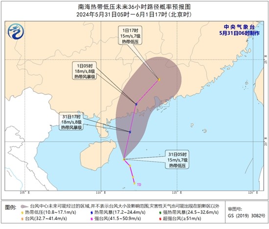 香港新聞網5月31日電 中國中央氣象台預計,南海熱帶低壓將於5月31日白天加強為今年第2號颱風,並於31日傍晚到6月1日凌晨在廣東珠海到電白一帶沿海登陸,登陸強度為熱帶低壓或熱帶風暴級。國家防總已於5月30日20時啟動防汛防颱風四級應急響應。