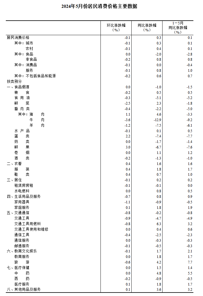 中國國家統計局:5月全國居民消費價格同比上漲0.3%分享到: