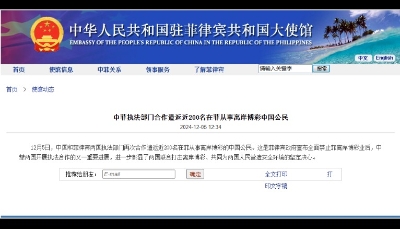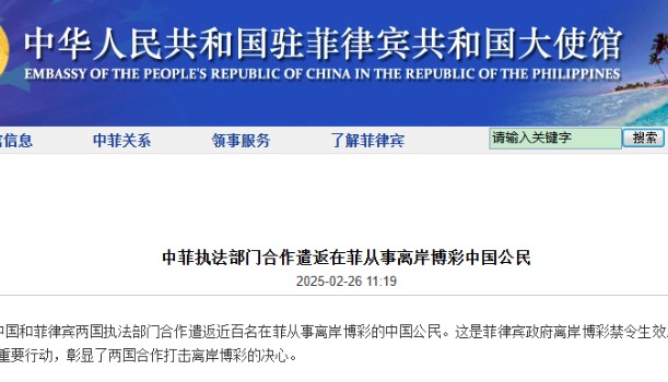中國駐菲律賓大使館網站截圖 據中國駐菲律賓大使館微信公眾號14日消息,發言人說,中國法律禁止一切形式的賭博。中國政府嚴厲打擊中國公民出境從事賭博業,包括離岸博彩等網絡賭博。大量事實表明,菲離岸博彩業滋生綁架勒索、販賣人口甚至故意殺人等嚴重犯罪,嚴重損害菲利益和形象,嚴重破壞中國人利益和形象,也嚴重危害中菲關係。 發言人表示,近年來,中菲執法部門一直保持密切溝通合作,並多次聯合開展打擊跨境賭博、電信網絡詐騙等行動。2018年以來,累計遣返近3000名涉案中國公民。僅過去一年,中方就協助菲方取締了5個離岸博彩園區,共遣返中國公民近1000人。 發言人指出,絕大多數涉案中國公民是菲離岸博彩的受害者。中國政府有責任保護中國公民合法權益。中方堅決反對借離岸博彩問題對中方進行的任何不實指控和污蔑抹黑。(完) 【編輯:馬華】